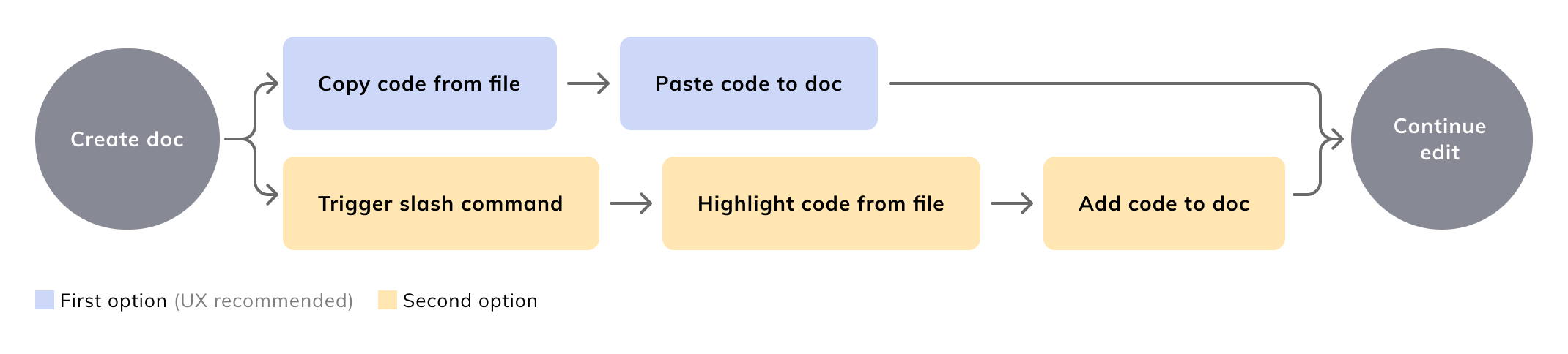Now that we're aligned with the editor's infra and tech implementation, let's look into how we could bring in the core functionality — adding code snippets to our doc.