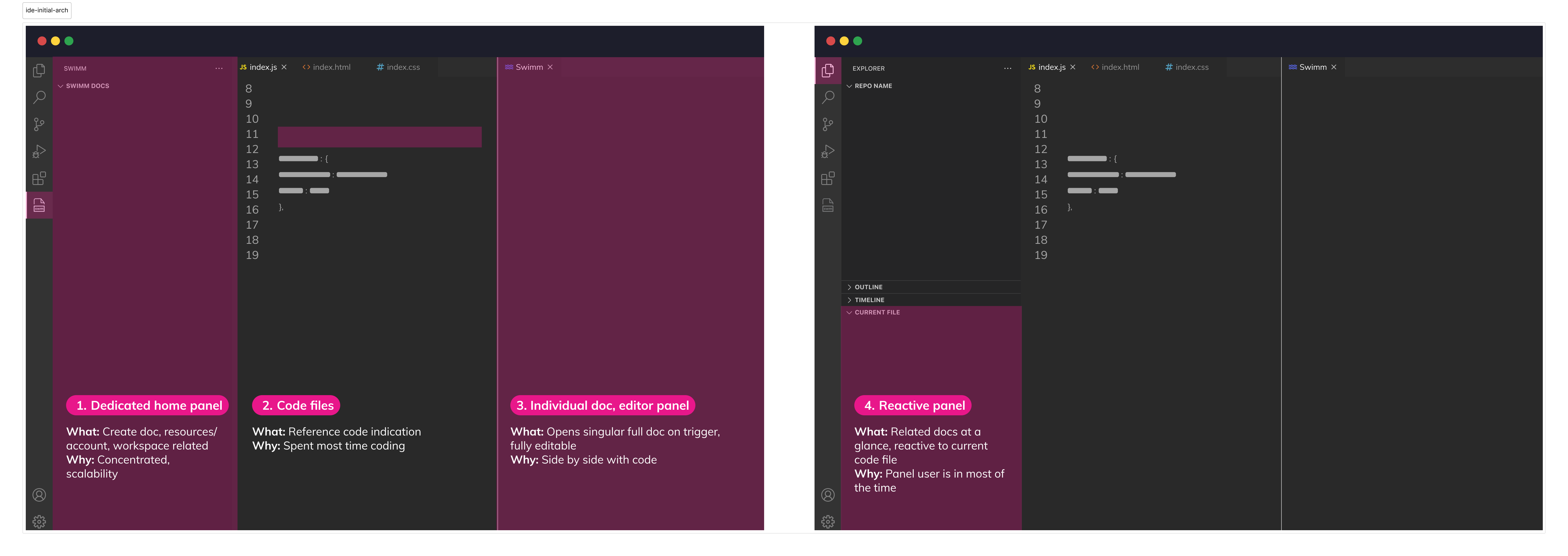 Editor panel - a panel the opens to the side of code file for core product offering like editing, viewing, maintaining individual doc